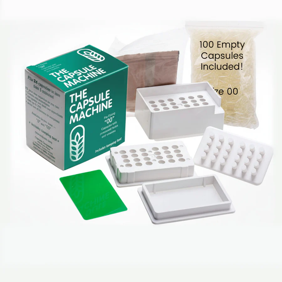 Stellen Sie Ihre eigenen Pilz- oder Nahrungsergänzungskapseln in wenigen Minuten her – mit dem Capsule Machine Bonus Kit. Enthält 100 „00“-Kapseln, Stopfen, Trockenmittel und eine leicht verständliche Anleitung. Einfach in der Anwendung, effizient und perfekt für den Eigenbedarf.